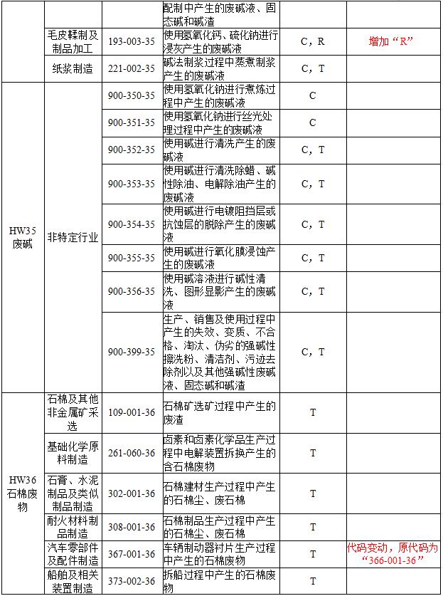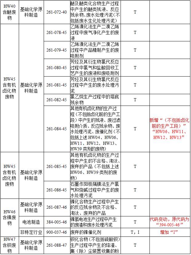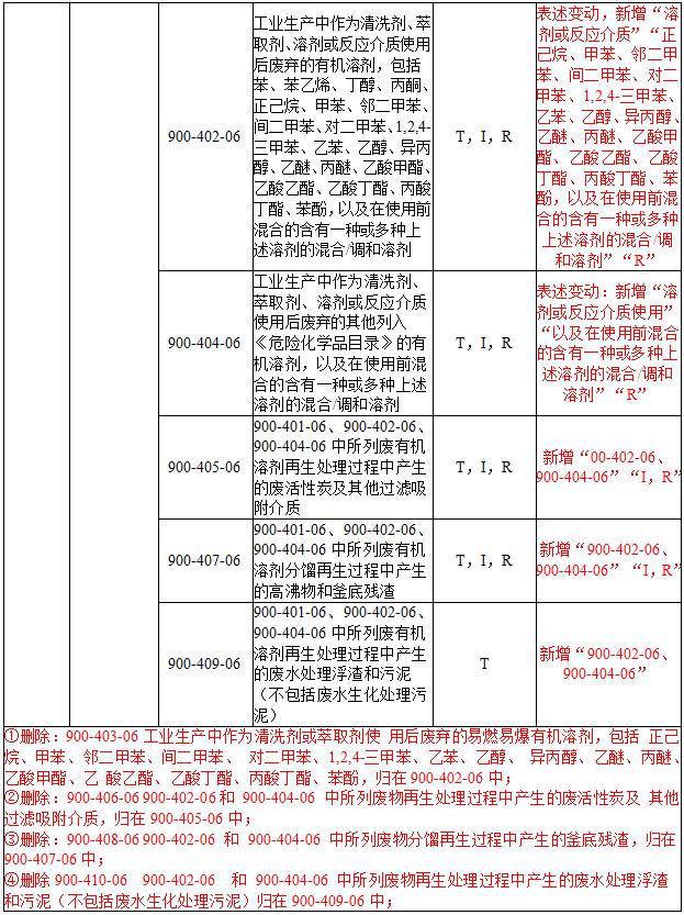 附表部分:主要對(duì)部分危險(xiǎn)廢物類別進(jìn)行了增減、合并以及表述的修改。《名錄》共計(jì)列入467種危險(xiǎn)廢物,較2016年版《名錄》減少了12種。