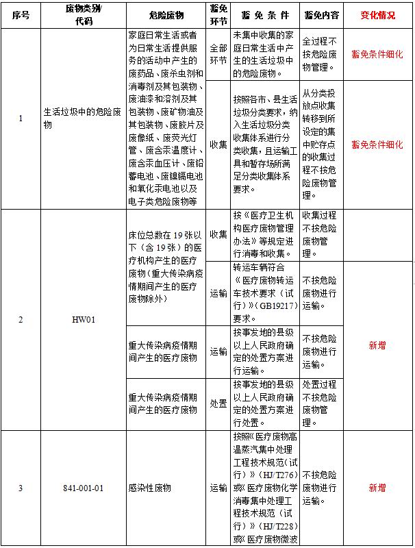 答:本次《名錄》修訂充分吸收新冠肺炎疫情期間醫(yī)療廢物管理工作經(jīng)驗(yàn),在風(fēng)險(xiǎn)可控前提下,完善了疫情醫(yī)療廢物豁免管理規(guī)定,規(guī)范了疫情期間醫(yī)療廢物應(yīng)急處置管理。