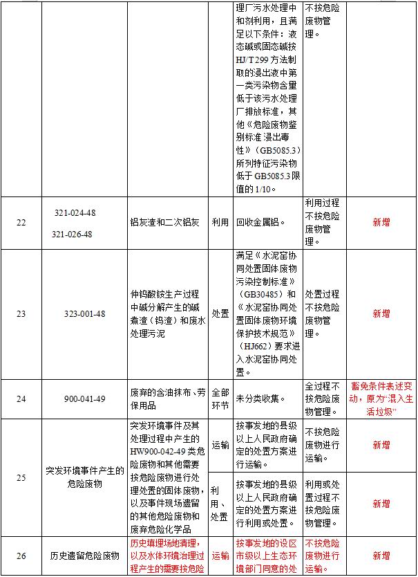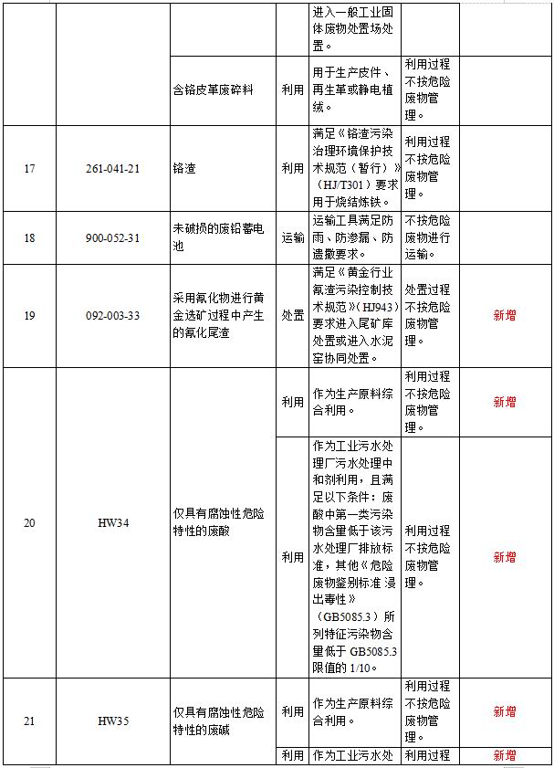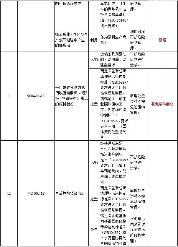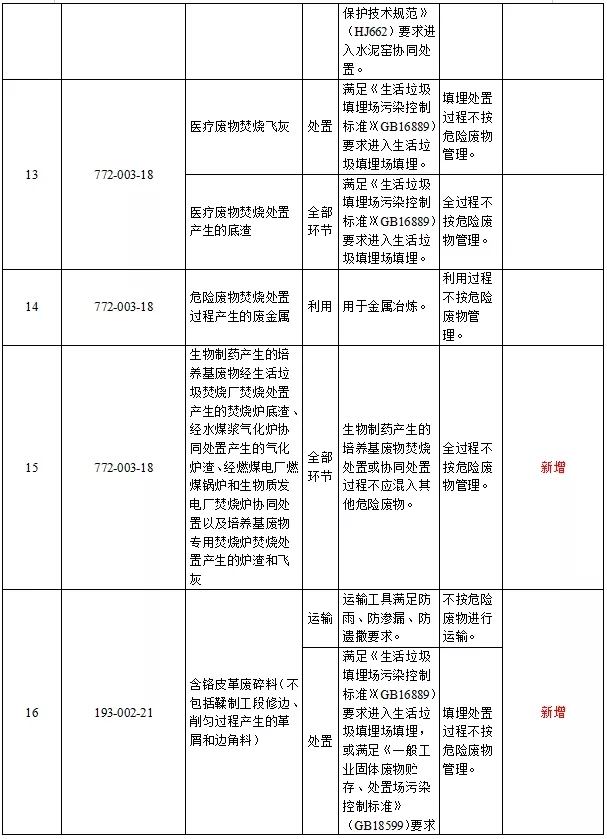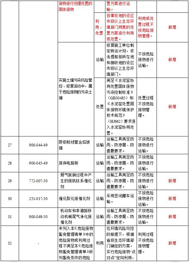 附錄部分:新增豁免16個(gè)種類危險(xiǎn)廢物,豁免的危險(xiǎn)廢物共計(jì)達(dá)到32個(gè)種類。