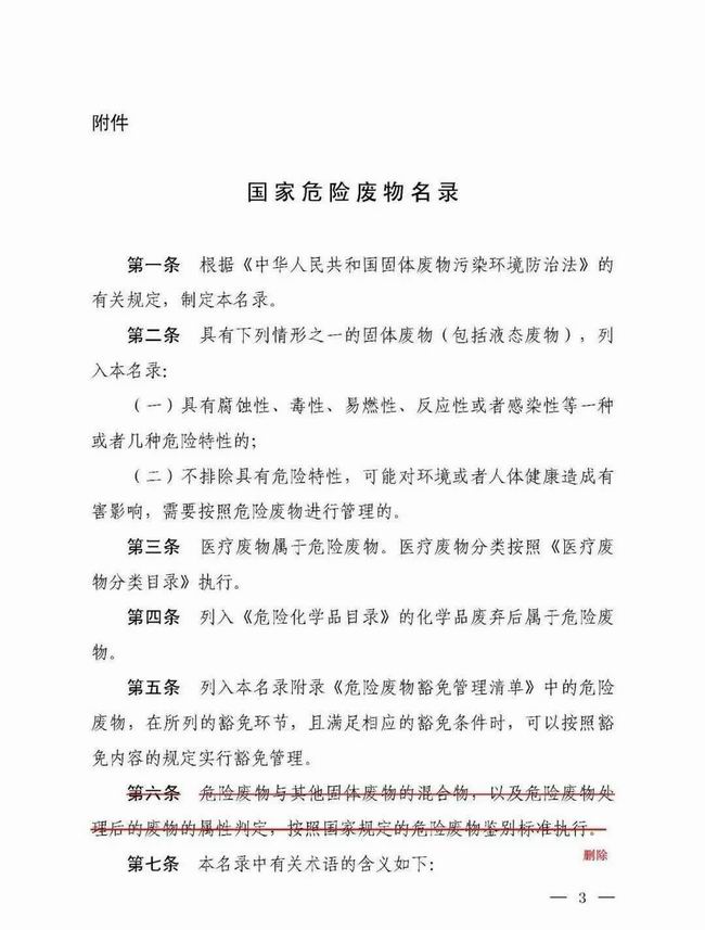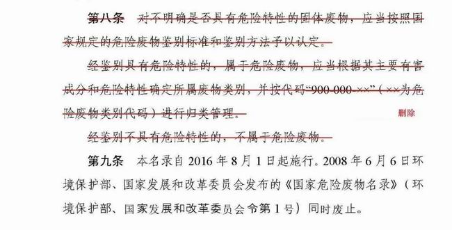 一是刪除2016年版《名錄》正文第四條“列入《危險化學品目錄》的化學品廢棄后屬于危險廢物”;