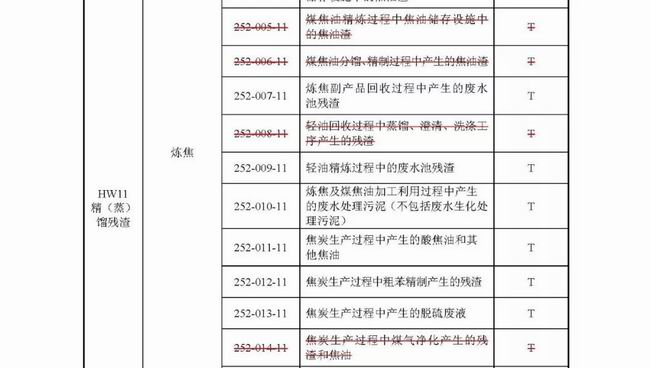 4.修改煤焦化相關危險廢物的規定。針對該類廢物重點從兩個方面進行修改:一是重新梳理并明確了煤焦化過程產生的各類危險廢物及其工藝來源;二是根據不同煤焦油的利用途徑,在《危險廢物豁免管理清單》中增加當煤焦油用于生產煤基氫化油、碳素材料、炭黑時,滿足一定條件利用過程可不按危險廢物管理的規定。
