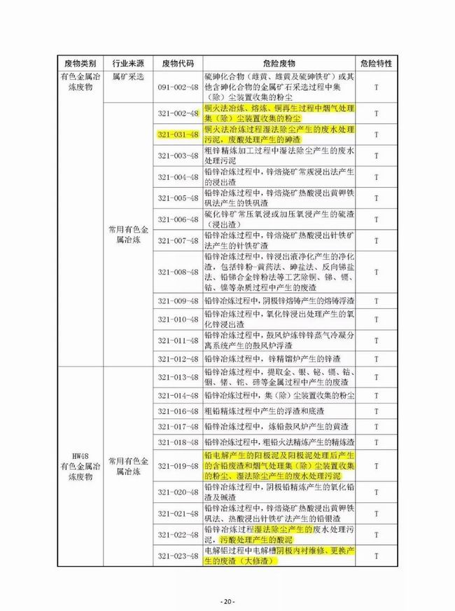 5.修改銅、鉛、鋅冶煉相關危險廢物的規定。2016年版《名錄》對銅、鉛、鋅等有色金屬冶煉過程產生的危險廢物類型及工藝描述不清,本次修訂過程中對該類廢物開展了專項調查研究,重新梳理并細化了銅、鉛、鋅冶煉過程產生的危險廢物種類及其工藝來源和危險特性。