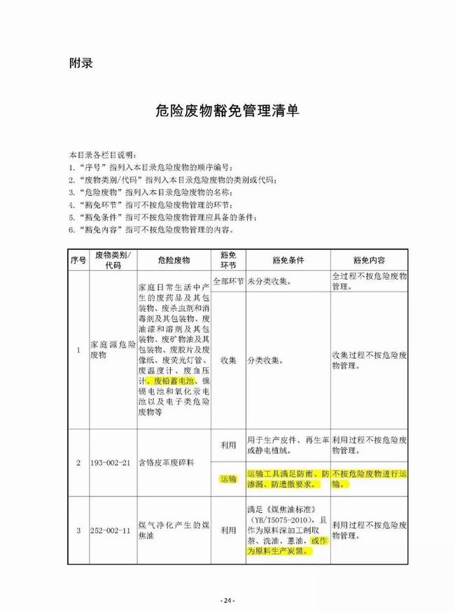 第四條列入本名錄附錄《危險廢物豁免管理清單》中的危險廢物,在所列的豁免環節,且滿足相應的豁免條件時,可以按照豁免內容的規定實行豁免管理。