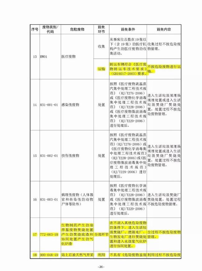 8.刪除為防治動物傳染病而需要收集和處置的廢物。2016年版《名錄》將“為防治動物傳染病而需要收集和處置的廢物”列為900-001-01類危險廢物,而動物防疫法明確要求該類廢物應當按照國務院獸醫主管部門的規定進行無害化處理,本次修訂將900-001-01類危險廢物刪除。