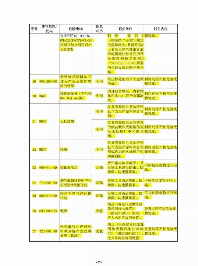 3.修訂了附錄《危險廢物豁免管理清單》。《名錄(修訂稿)》(二次征求意見稿)的附錄新增14種危險廢物,共計30種危險廢物。